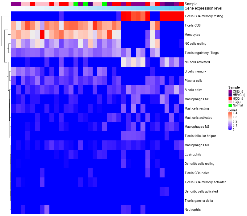 Liver hepatocellular carcinoma HCV (HBV+)(86), Liver hepatocellular carcinoma HCV (HBV-)(19), Liver hepatocellular carcinoma (HBV+)(209), Liver hepatocellular carcinoma (HBV+)(60), Paracancerous HCV (HBV+)(4), Paracancerous (HBV-)(28), Paracancerous (HBV+)(18) |