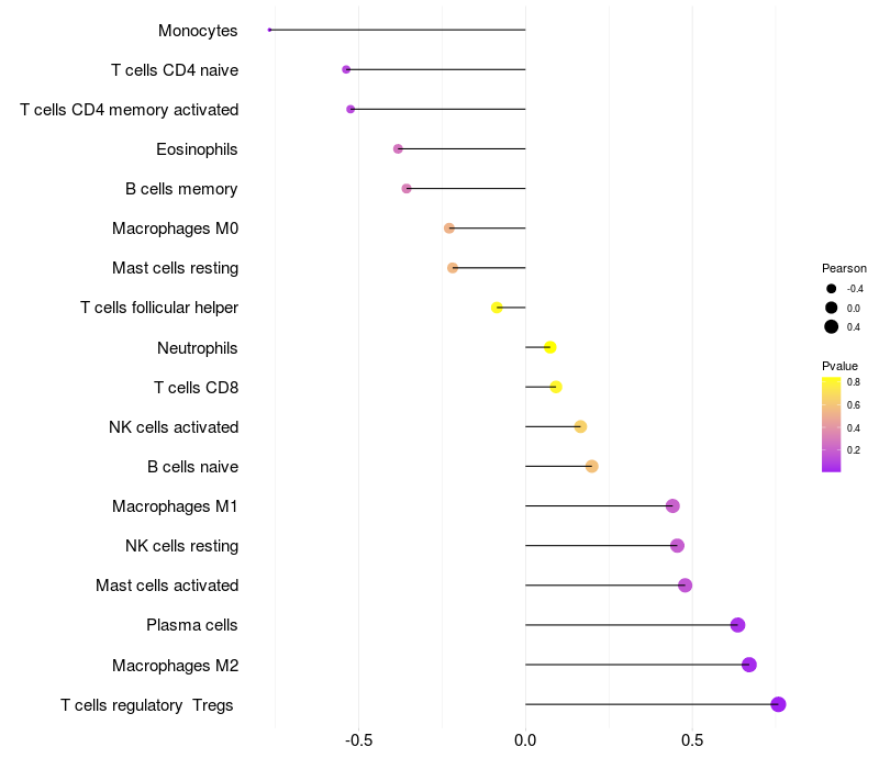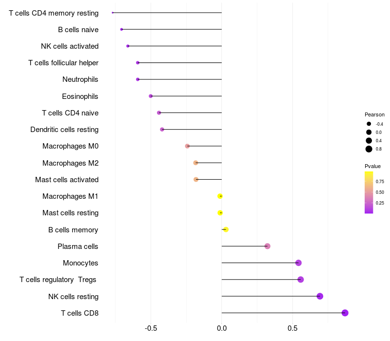 Lollipop of CAMK2A expression and immune infiltrating cell level correlation result in HBV+ samples