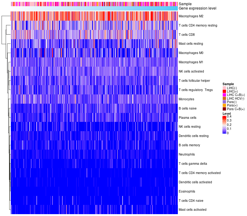 Relationship between gene expression and immune infiltrating cell level