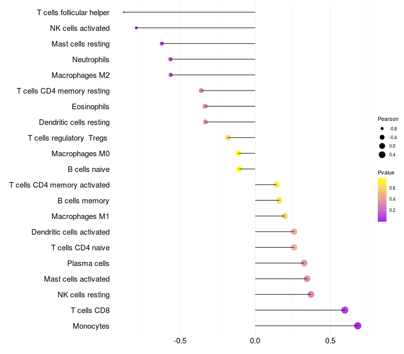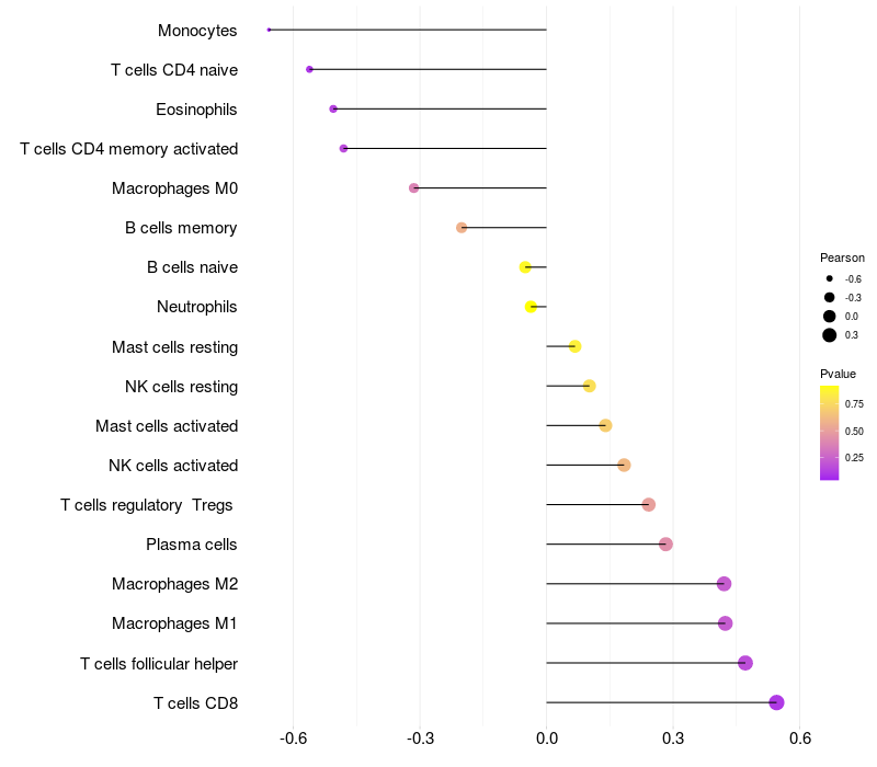 Lollipop of CAMK4 expression and immune infiltrating cell level correlation result in HBV+ Liver cirrhosis samples