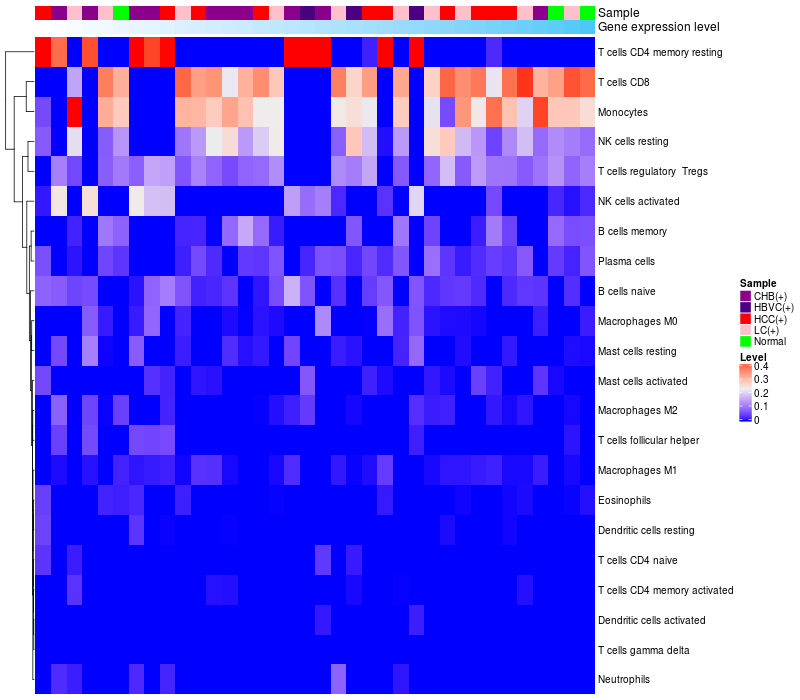 Liver hepatocellular carcinoma HCV (HBV+)(86), Liver hepatocellular carcinoma HCV (HBV-)(19), Liver hepatocellular carcinoma (HBV+)(209), Liver hepatocellular carcinoma (HBV+)(60), Paracancerous HCV (HBV+)(4), Paracancerous (HBV-)(28), Paracancerous (HBV+)(18) |