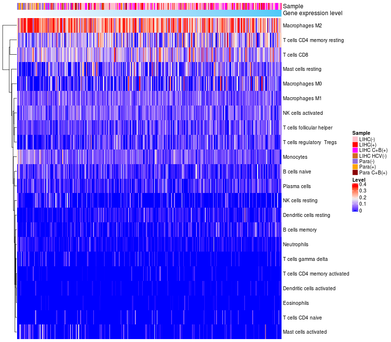 Relationship between gene expression and immune infiltrating cell level