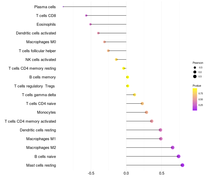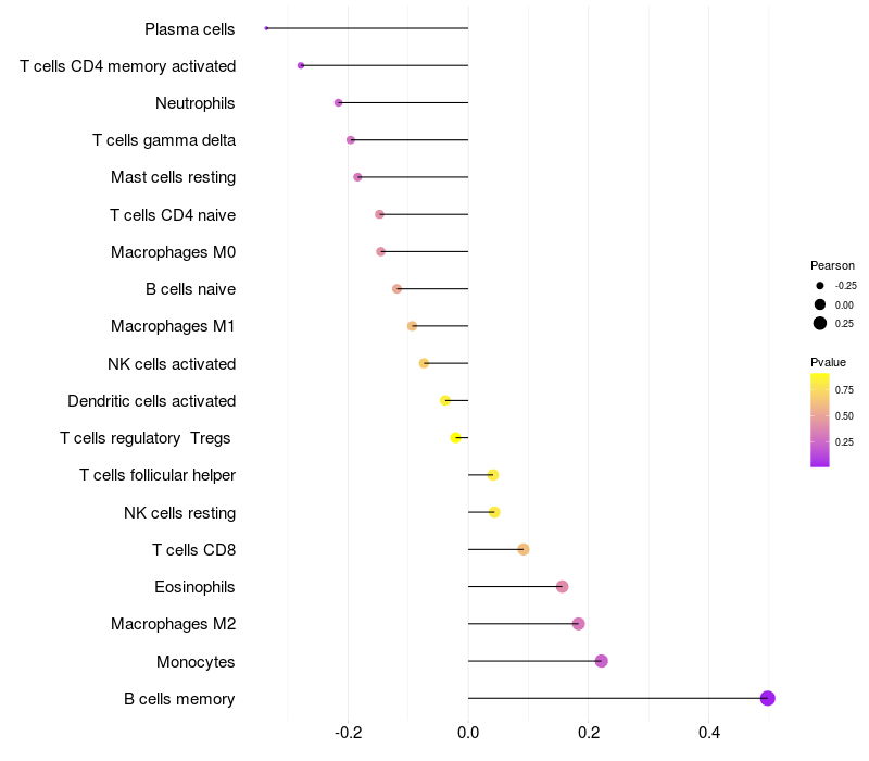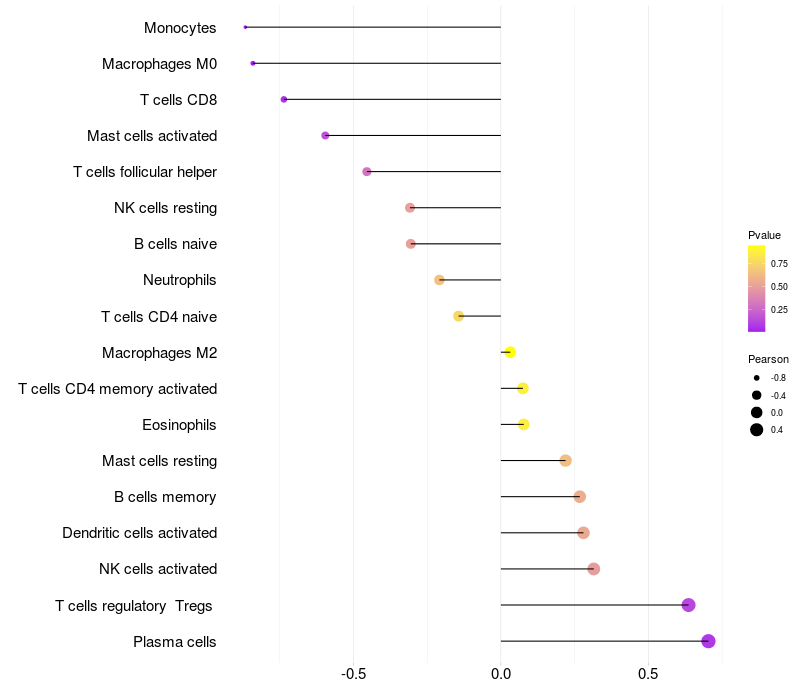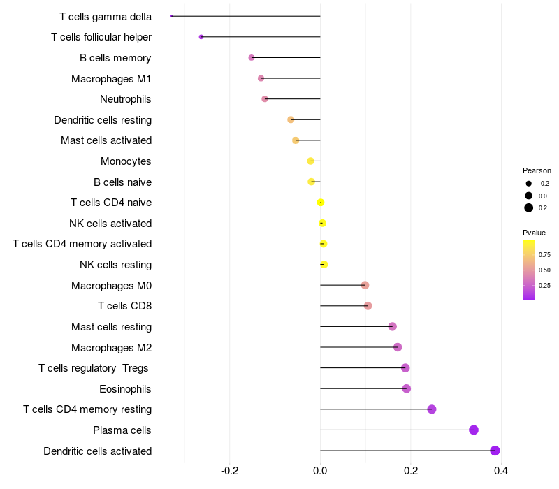 Lollipop of CCDC138 expression and immune infiltrating cell level correlation result in EBV+ samples