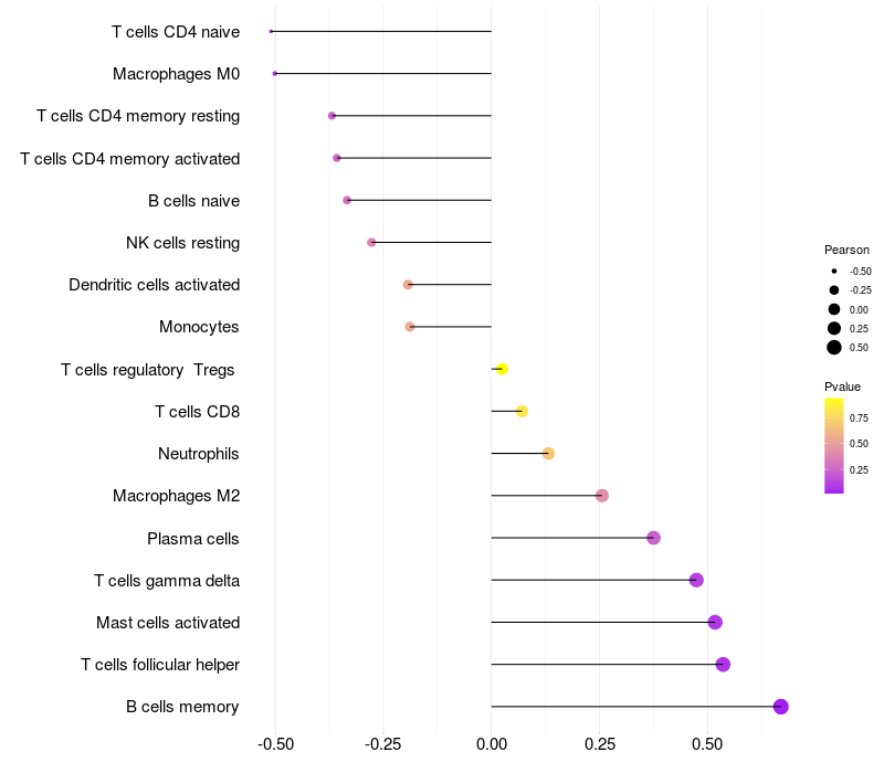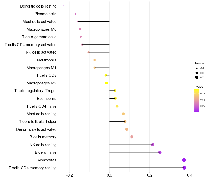 Lollipop of CCDC171 expression and immune infiltrating cell level correlation result in EBV+ samples
