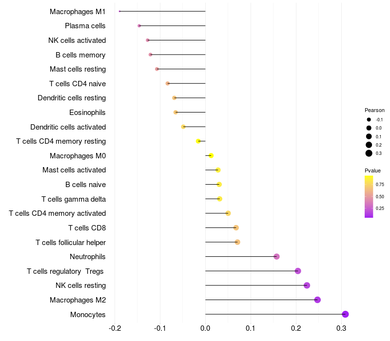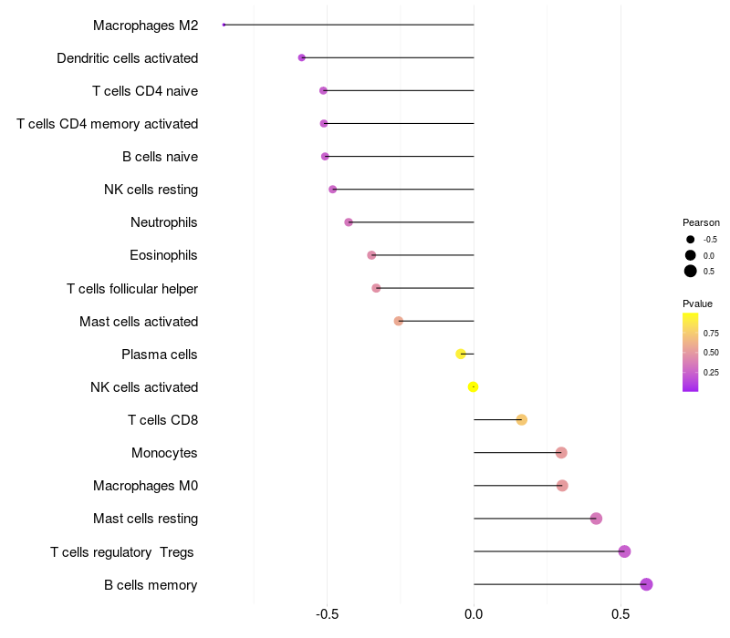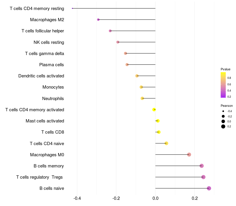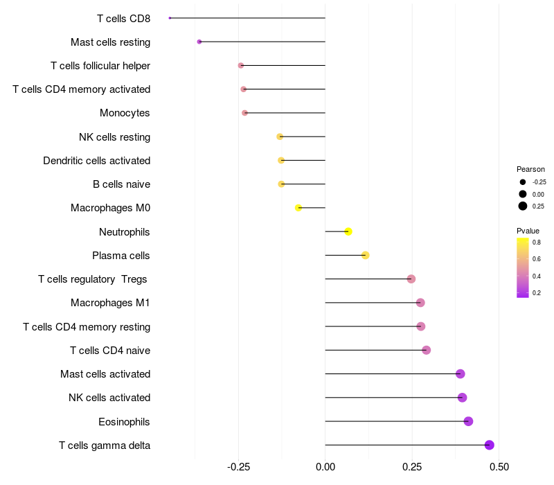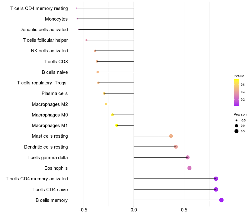 Lollipop of CCDC178 expression and immune infiltrating cell level correlation result in EBV+ samples