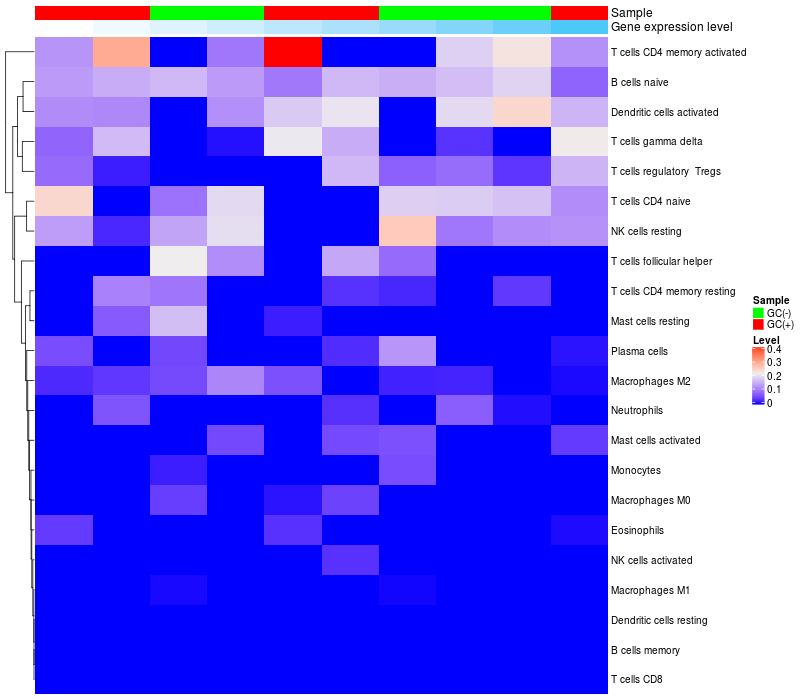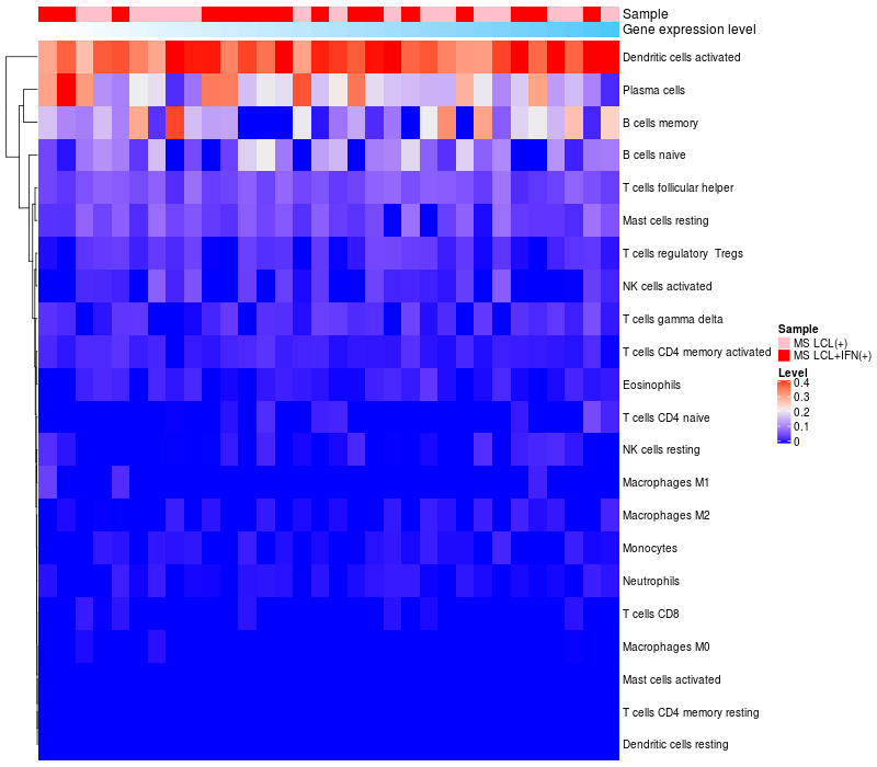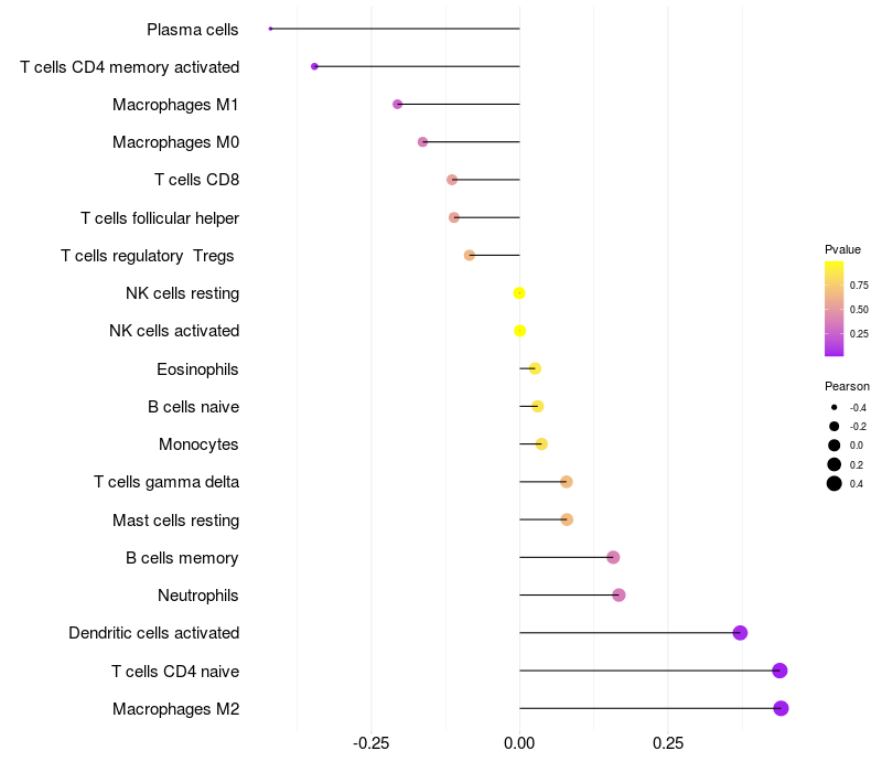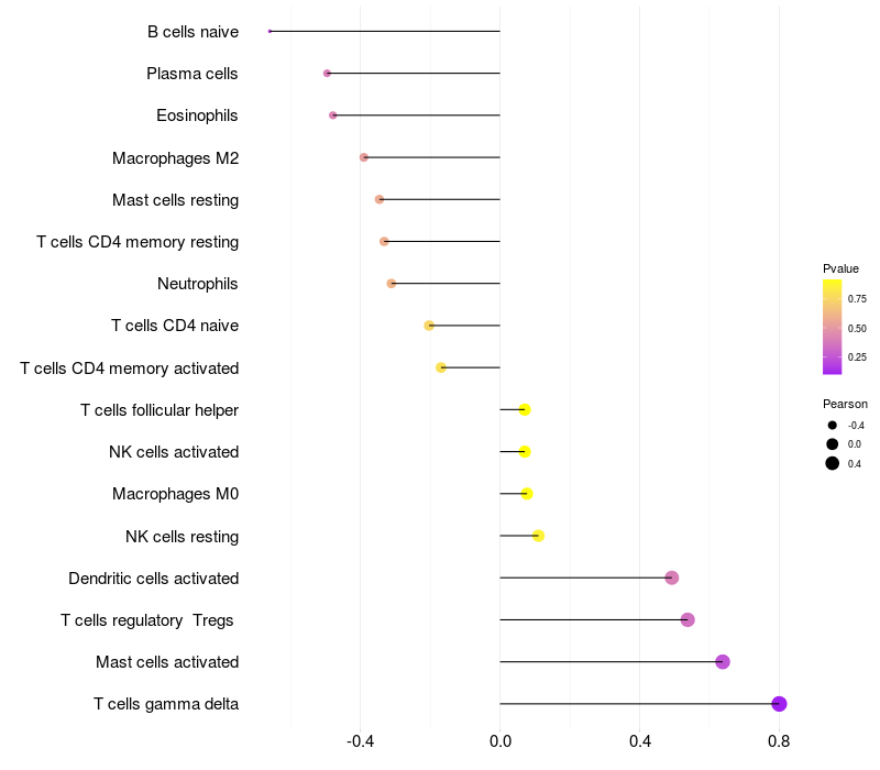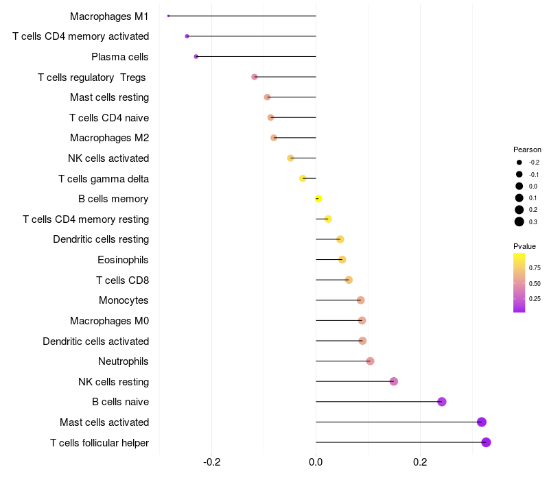 Lollipop of CCDC26 expression and immune infiltrating cell level correlation result in EBV+ samples