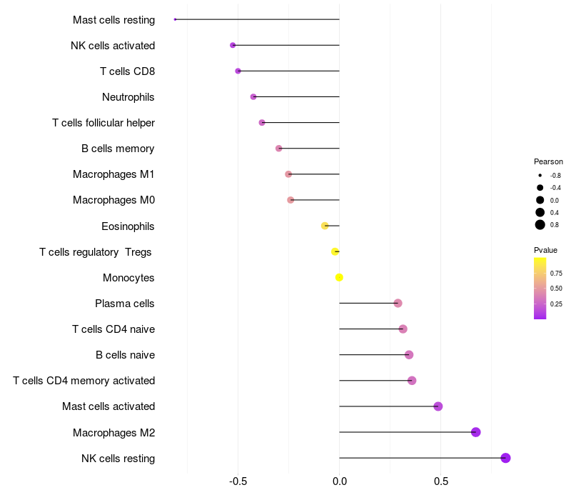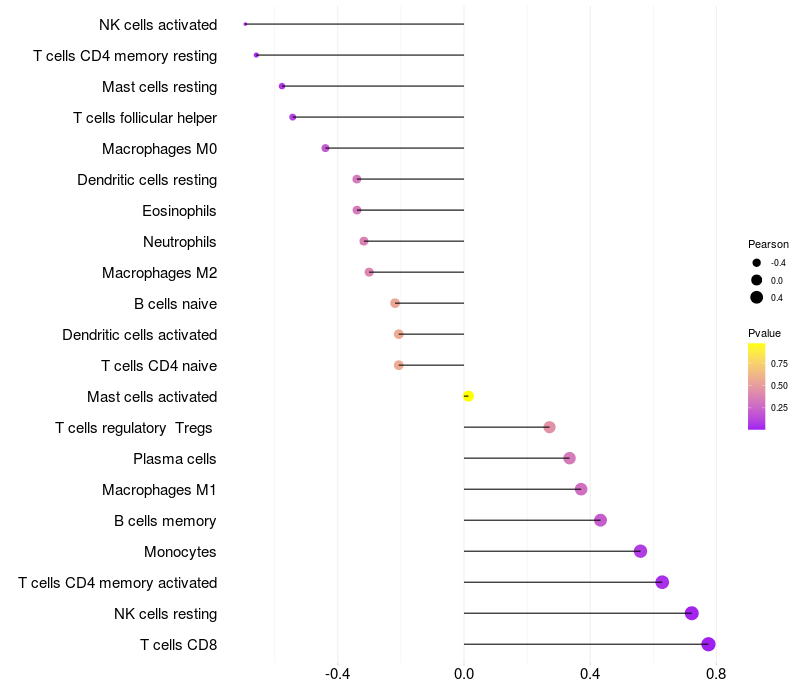 Lollipop of CCDC33 expression and immune infiltrating cell level correlation result in HBV+ samples