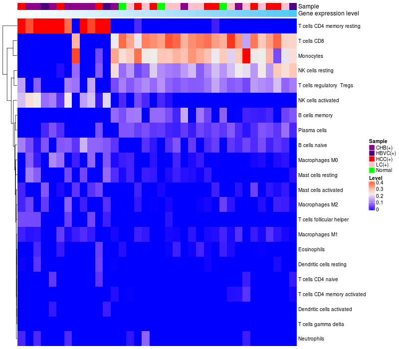 Relationship between gene expression and immune infiltrating cell level