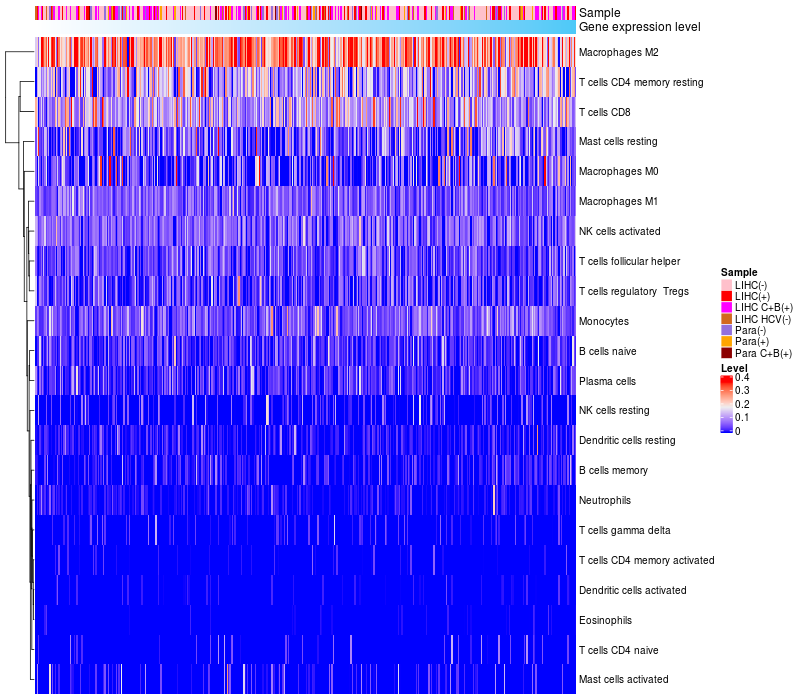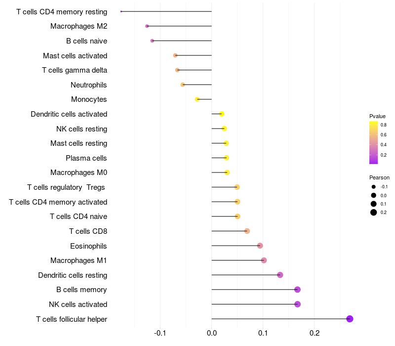 Relationship between gene expression and immune infiltrating cell level