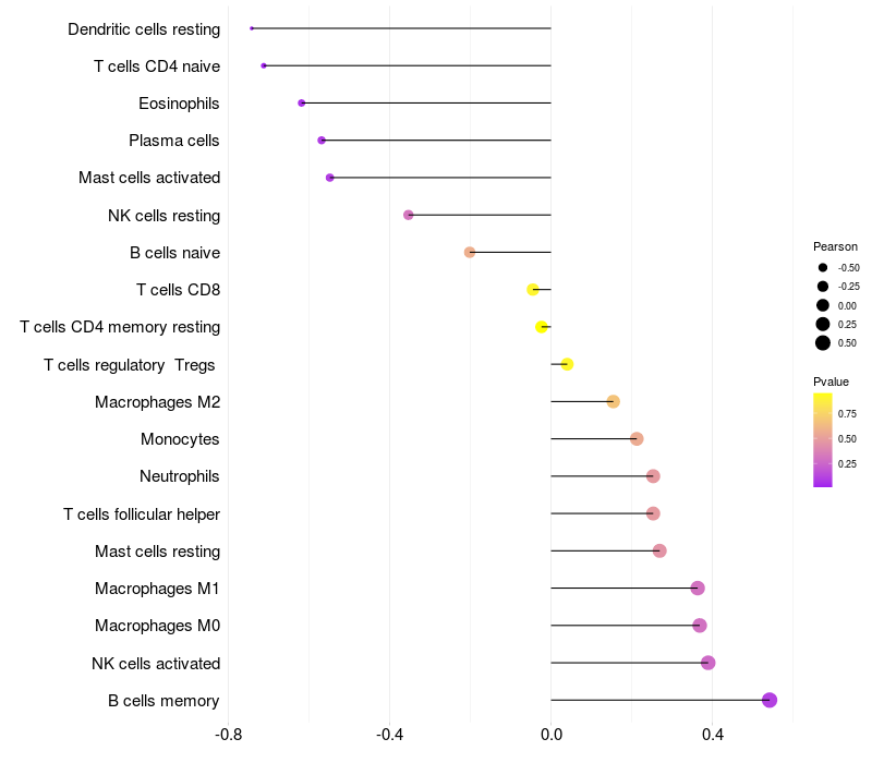 Lollipop of CCDC93 expression and immune infiltrating cell level correlation result in HBV+ samples