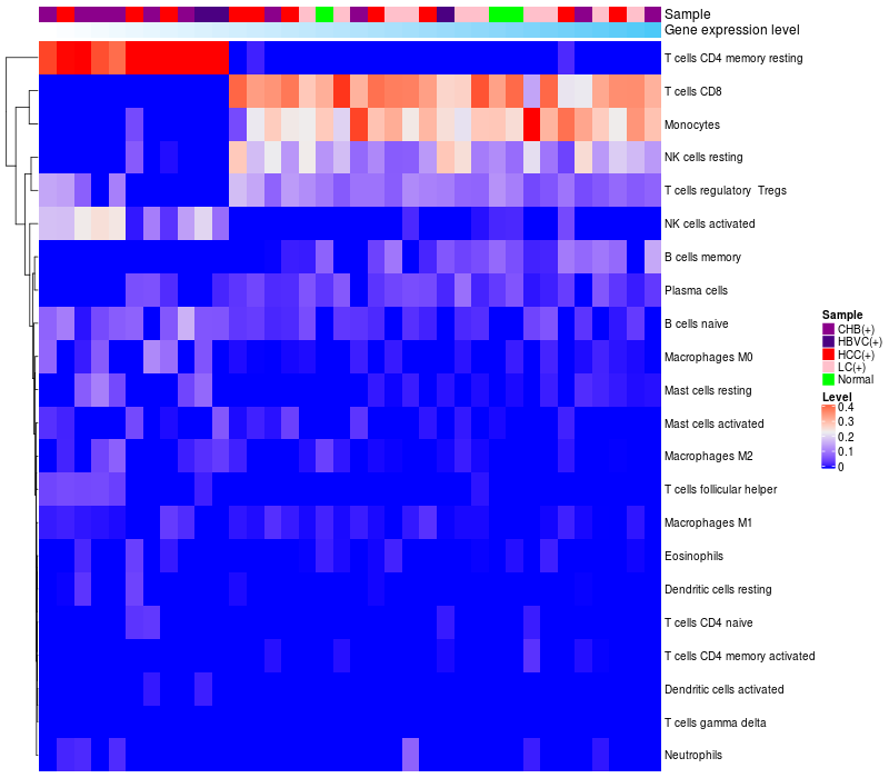 Relationship between gene expression and immune infiltrating cell level