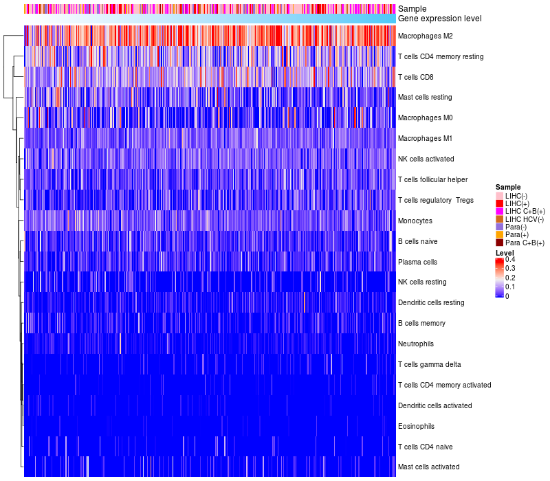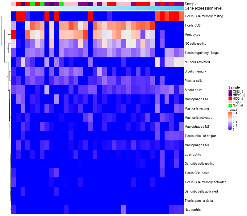 Relationship between gene expression and immune infiltrating cell level