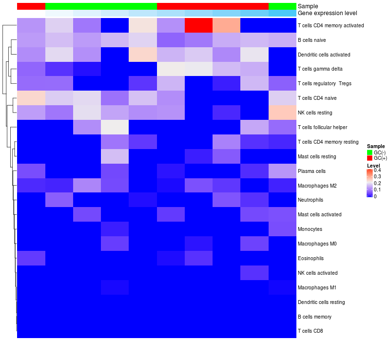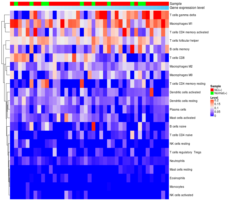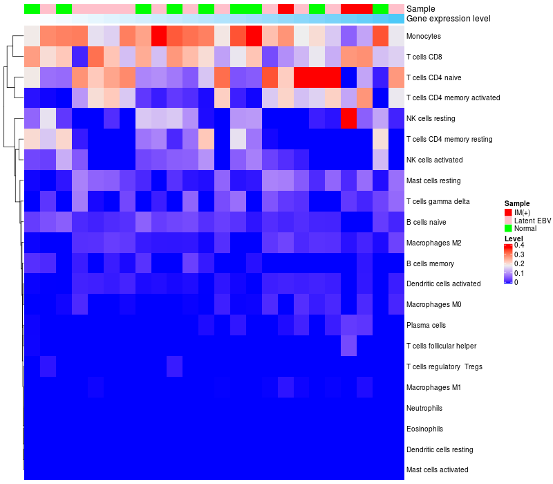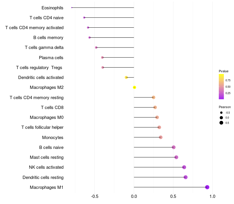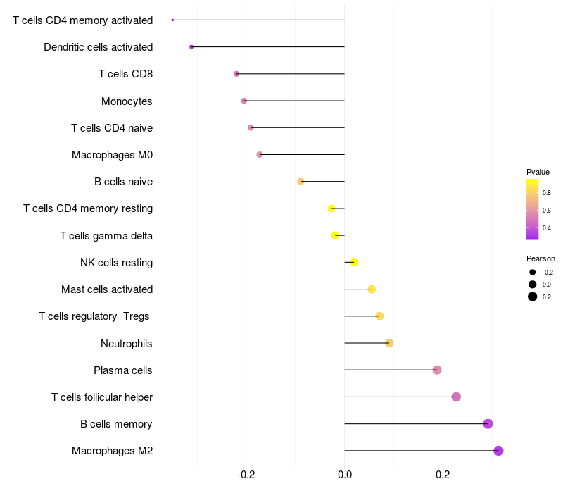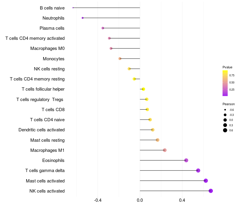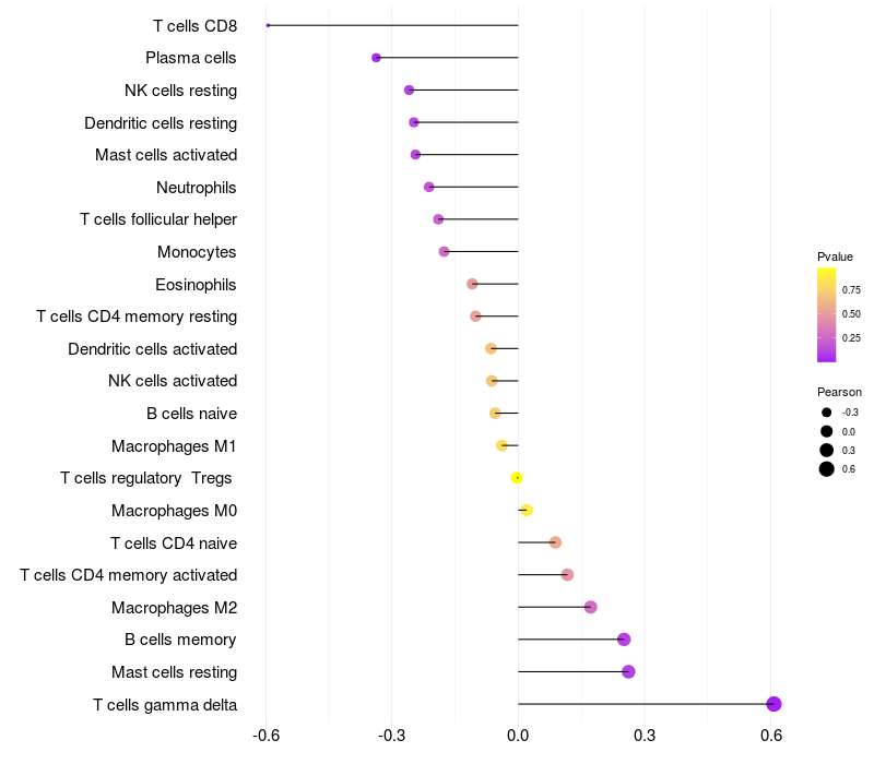 Lollipop of CD226 expression and immune infiltrating cell level correlation result in EBV+ samples