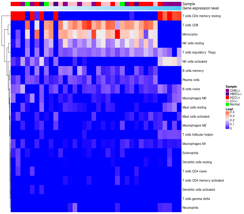 Liver hepatocellular carcinoma HCV (HBV+)(86), Liver hepatocellular carcinoma HCV (HBV-)(19), Liver hepatocellular carcinoma (HBV+)(209), Liver hepatocellular carcinoma (HBV+)(60), Paracancerous HCV (HBV+)(4), Paracancerous (HBV-)(28), Paracancerous (HBV+)(18) |