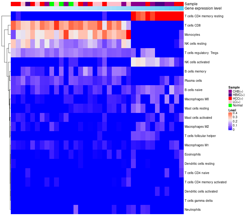 Liver hepatocellular carcinoma HCV (HBV+)(86), Liver hepatocellular carcinoma HCV (HBV-)(19), Liver hepatocellular carcinoma (HBV+)(209), Liver hepatocellular carcinoma (HBV+)(60), Paracancerous HCV (HBV+)(4), Paracancerous (HBV-)(28), Paracancerous (HBV+)(18) |