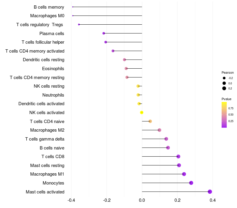 Relationship between gene expression and immune infiltrating cell level