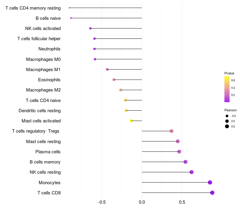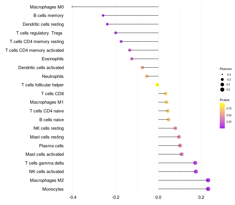 Lollipop of CDH23 expression and immune infiltrating cell level correlation result in HBV+ Liver cirrhosis samples
