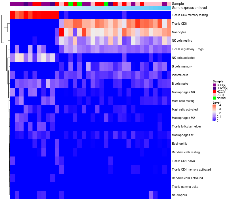 Liver hepatocellular carcinoma HCV (HBV+)(86), Liver hepatocellular carcinoma HCV (HBV-)(19), Liver hepatocellular carcinoma (HBV+)(209), Liver hepatocellular carcinoma (HBV+)(60), Paracancerous HCV (HBV+)(4), Paracancerous (HBV-)(28), Paracancerous (HBV+)(18) |