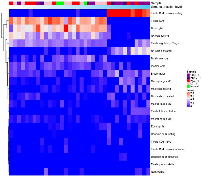 Liver hepatocellular carcinoma HCV (HBV+)(86), Liver hepatocellular carcinoma HCV (HBV-)(19), Liver hepatocellular carcinoma (HBV+)(209), Liver hepatocellular carcinoma (HBV+)(60), Paracancerous HCV (HBV+)(4), Paracancerous (HBV-)(28), Paracancerous (HBV+)(18) |