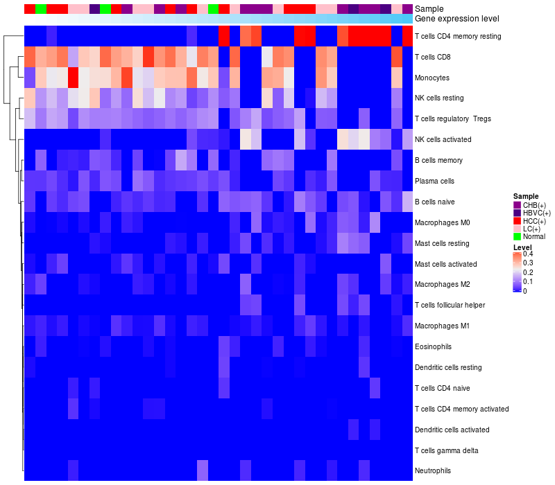 Liver hepatocellular carcinoma HCV (HBV+)(86), Liver hepatocellular carcinoma HCV (HBV-)(19), Liver hepatocellular carcinoma (HBV+)(209), Liver hepatocellular carcinoma (HBV+)(60), Paracancerous HCV (HBV+)(4), Paracancerous (HBV-)(28), Paracancerous (HBV+)(18) |