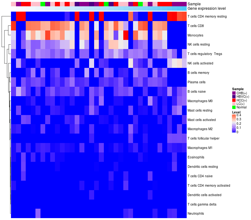 Relationship between gene expression and immune infiltrating cell level