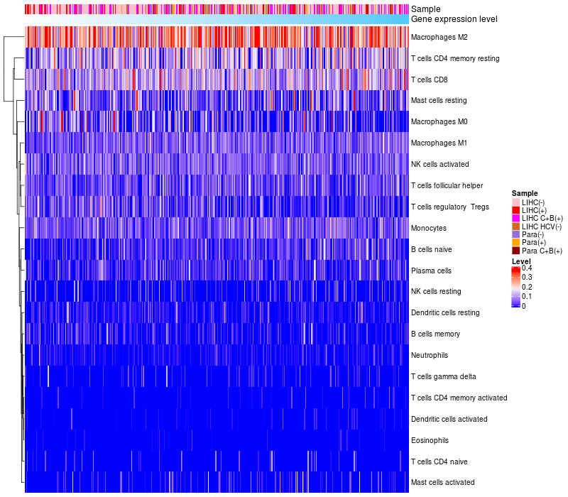 Relationship between gene expression and immune infiltrating cell level