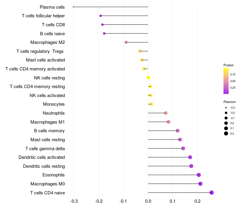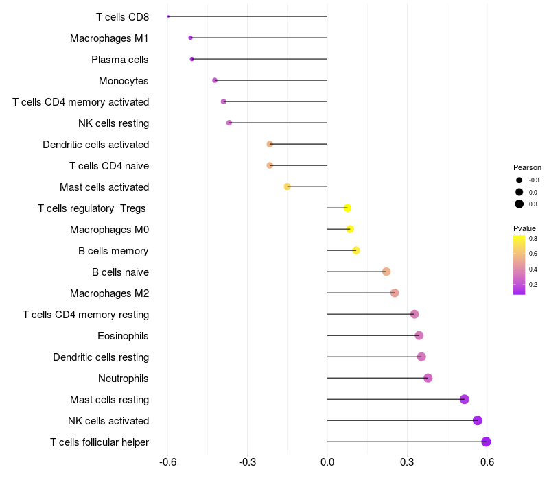 Lollipop of CEP63 expression and immune infiltrating cell level correlation result in HBV+ samples