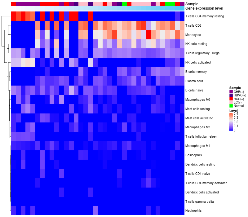 Liver hepatocellular carcinoma HCV (HBV+)(86), Liver hepatocellular carcinoma HCV (HBV-)(19), Liver hepatocellular carcinoma (HBV+)(209), Liver hepatocellular carcinoma (HBV+)(60), Paracancerous HCV (HBV+)(4), Paracancerous (HBV-)(28), Paracancerous (HBV+)(18) |