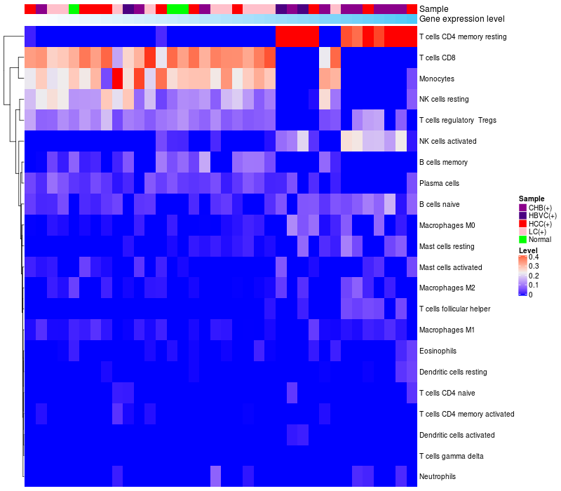 Liver hepatocellular carcinoma HCV (HBV+)(86), Liver hepatocellular carcinoma HCV (HBV-)(19), Liver hepatocellular carcinoma (HBV+)(209), Liver hepatocellular carcinoma (HBV+)(60), Paracancerous HCV (HBV+)(4), Paracancerous (HBV-)(28), Paracancerous (HBV+)(18) |