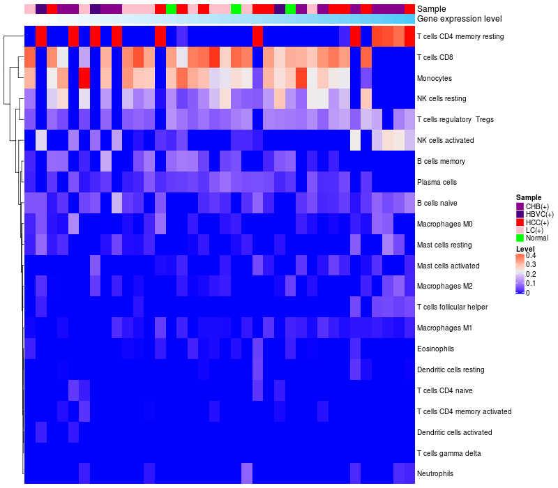 Liver hepatocellular carcinoma HCV (HBV+)(86), Liver hepatocellular carcinoma HCV (HBV-)(19), Liver hepatocellular carcinoma (HBV+)(209), Liver hepatocellular carcinoma (HBV+)(60), Paracancerous HCV (HBV+)(4), Paracancerous (HBV-)(28), Paracancerous (HBV+)(18) |