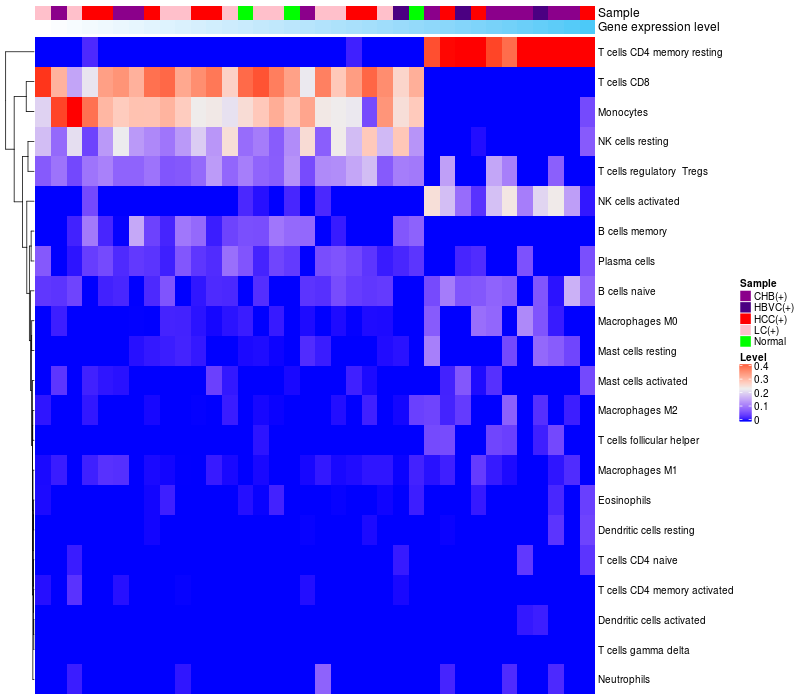 Liver hepatocellular carcinoma HCV (HBV+)(86), Liver hepatocellular carcinoma HCV (HBV-)(19), Liver hepatocellular carcinoma (HBV+)(209), Liver hepatocellular carcinoma (HBV+)(60), Paracancerous HCV (HBV+)(4), Paracancerous (HBV-)(28), Paracancerous (HBV+)(18) |