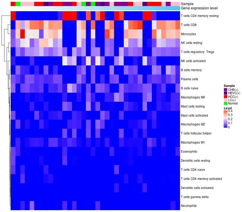 Liver hepatocellular carcinoma HCV (HBV+)(86), Liver hepatocellular carcinoma HCV (HBV-)(19), Liver hepatocellular carcinoma (HBV+)(209), Liver hepatocellular carcinoma (HBV+)(60), Paracancerous HCV (HBV+)(4), Paracancerous (HBV-)(28), Paracancerous (HBV+)(18) |