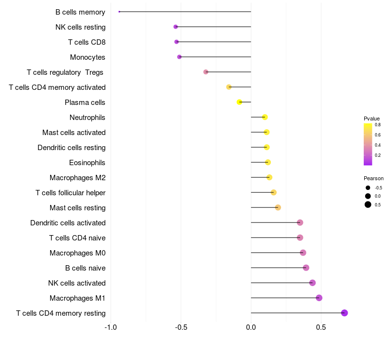 Lollipop of CHID1 expression and immune infiltrating cell level correlation result in HBV+ Liver cirrhosis samples