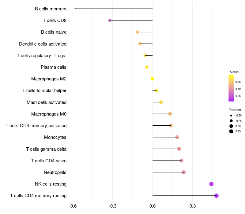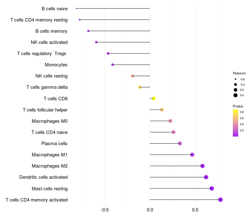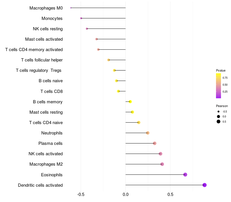 Lollipop of CHSY3 expression and immune infiltrating cell level correlation result in EBV+ samples