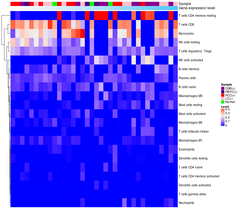 Lollipop of CLIC1 expression and immune infiltrating cell level correlation result in HBV+ Hepatocellular carcinoma samples