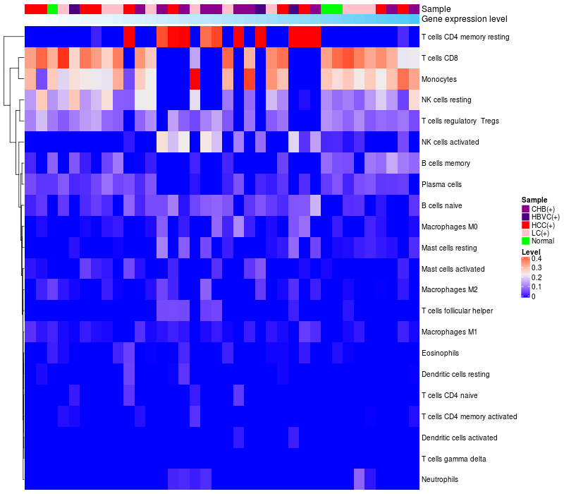 Liver hepatocellular carcinoma HCV (HBV+)(86), Liver hepatocellular carcinoma HCV (HBV-)(19), Liver hepatocellular carcinoma (HBV+)(209), Liver hepatocellular carcinoma (HBV+)(60), Paracancerous HCV (HBV+)(4), Paracancerous (HBV-)(28), Paracancerous (HBV+)(18) |
