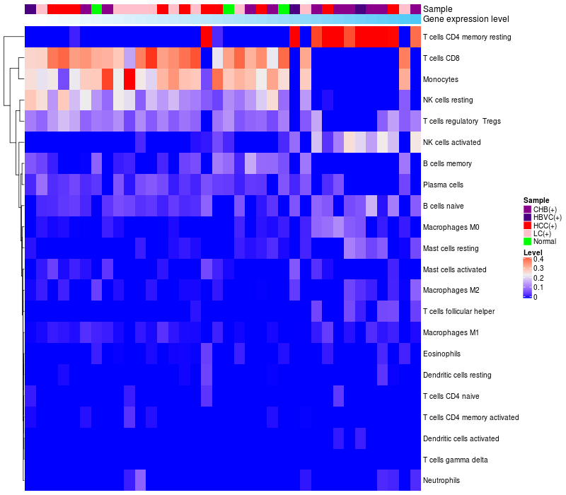 Liver hepatocellular carcinoma HCV (HBV+)(86), Liver hepatocellular carcinoma HCV (HBV-)(19), Liver hepatocellular carcinoma (HBV+)(209), Liver hepatocellular carcinoma (HBV+)(60), Paracancerous HCV (HBV+)(4), Paracancerous (HBV-)(28), Paracancerous (HBV+)(18) |