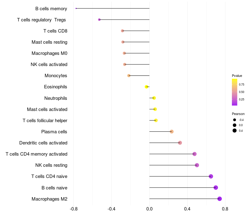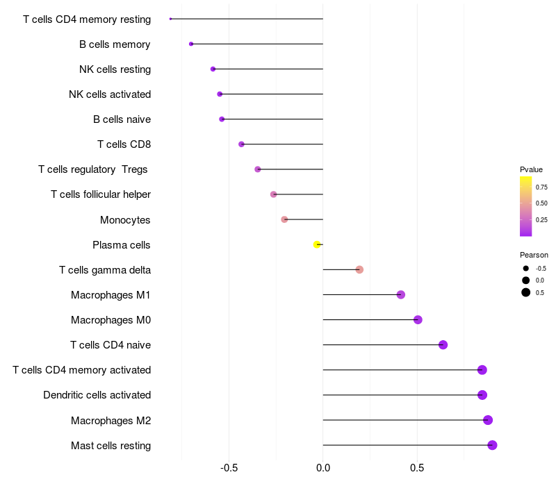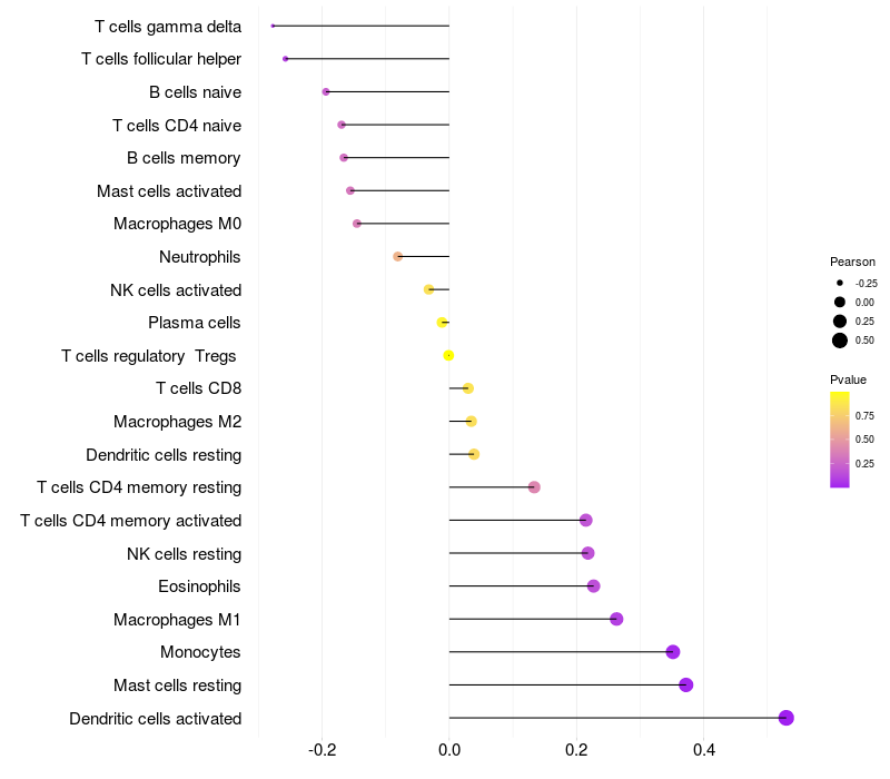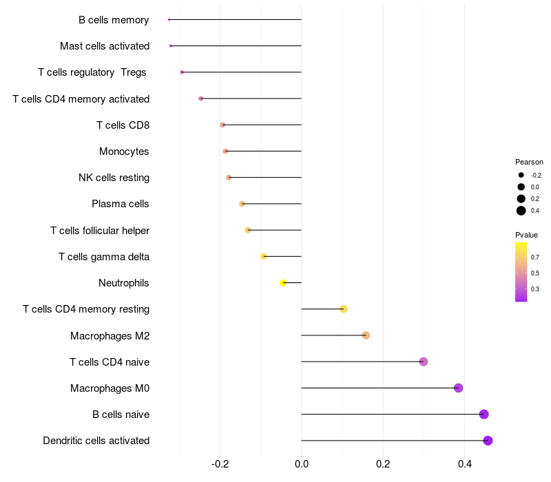 Lollipop of CNTLN expression and immune infiltrating cell level correlation result in EBV+ samples