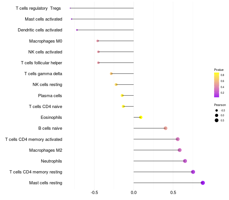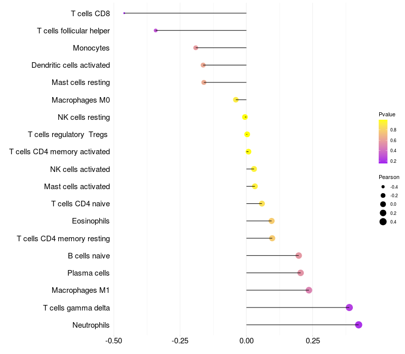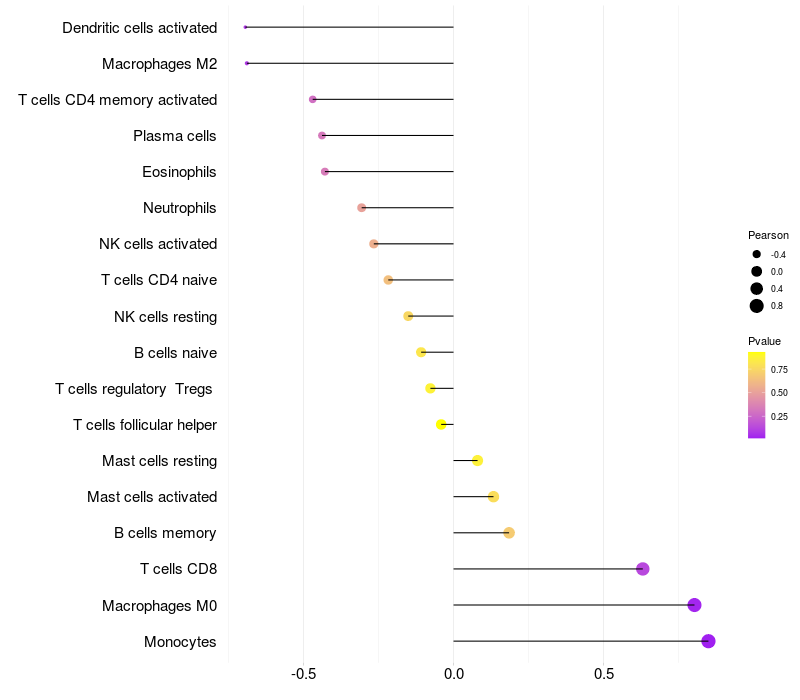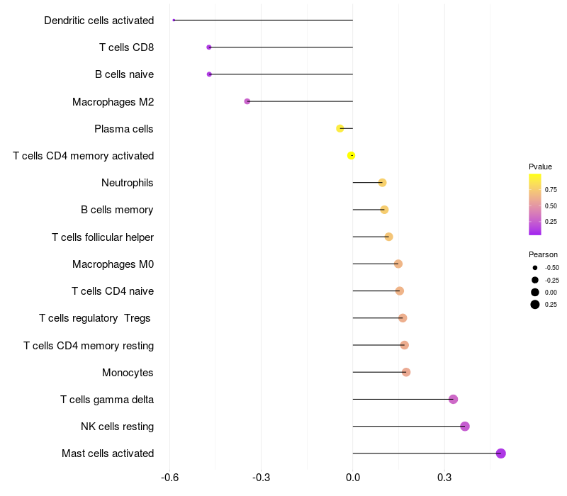 Lollipop of CNTNAP5 expression and immune infiltrating cell level correlation result in EBV+ samples