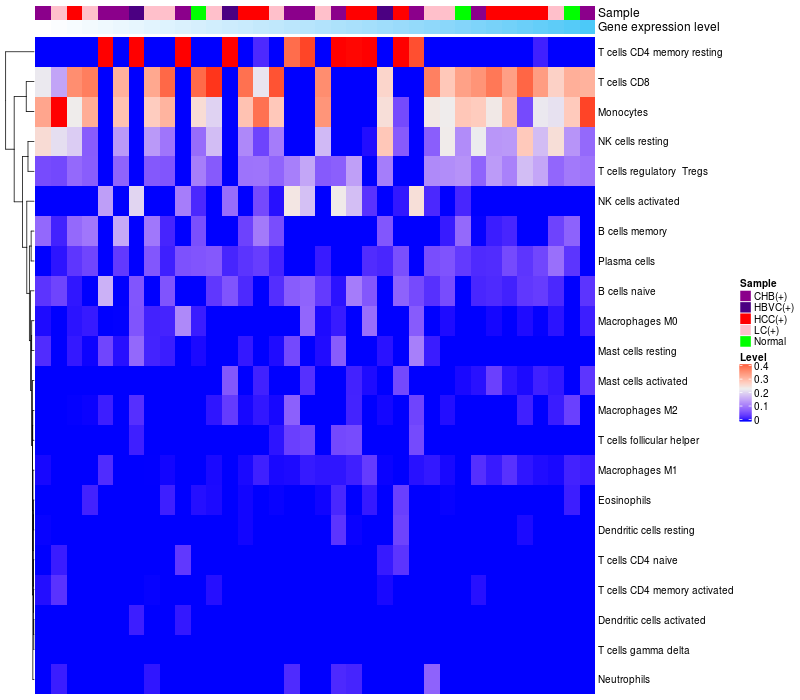 Relationship between gene expression and immune infiltrating cell level
