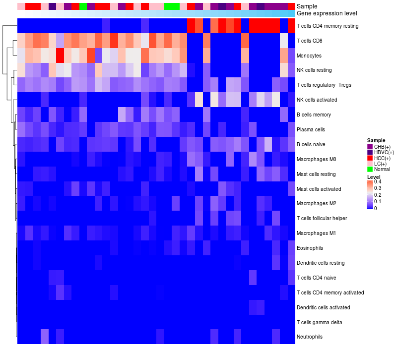 Relationship between gene expression and immune infiltrating cell level