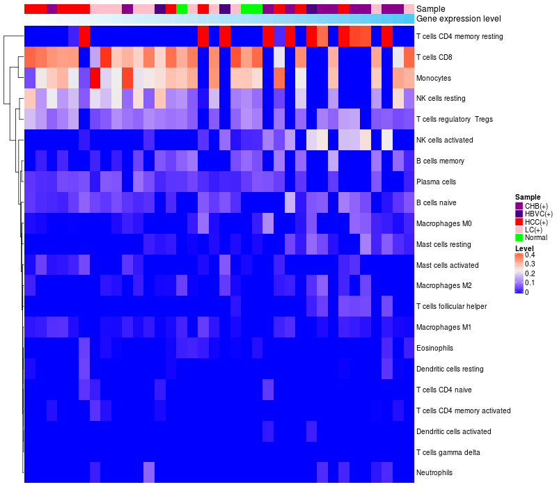 Relationship between gene expression and immune infiltrating cell level