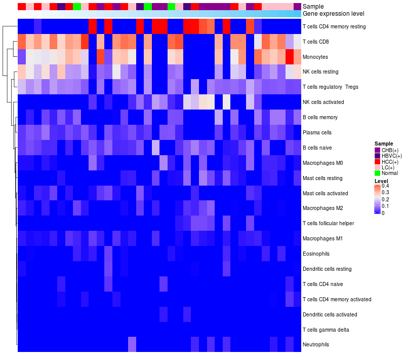 Liver hepatocellular carcinoma HCV (HBV+)(86), Liver hepatocellular carcinoma HCV (HBV-)(19), Liver hepatocellular carcinoma (HBV+)(209), Liver hepatocellular carcinoma (HBV+)(60), Paracancerous HCV (HBV+)(4), Paracancerous (HBV-)(28), Paracancerous (HBV+)(18) |