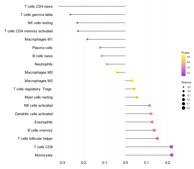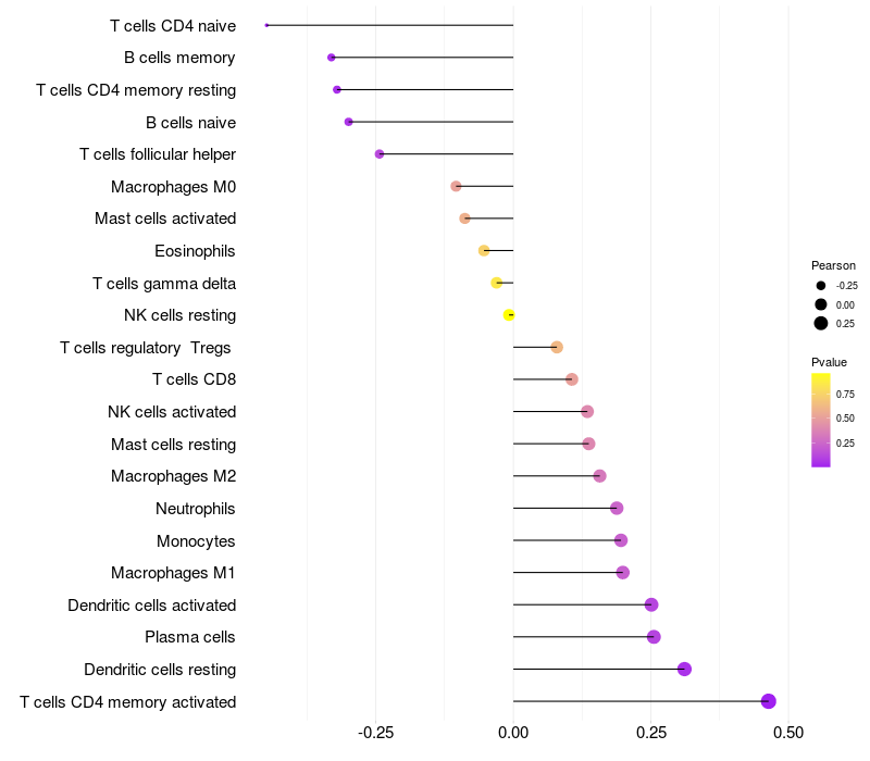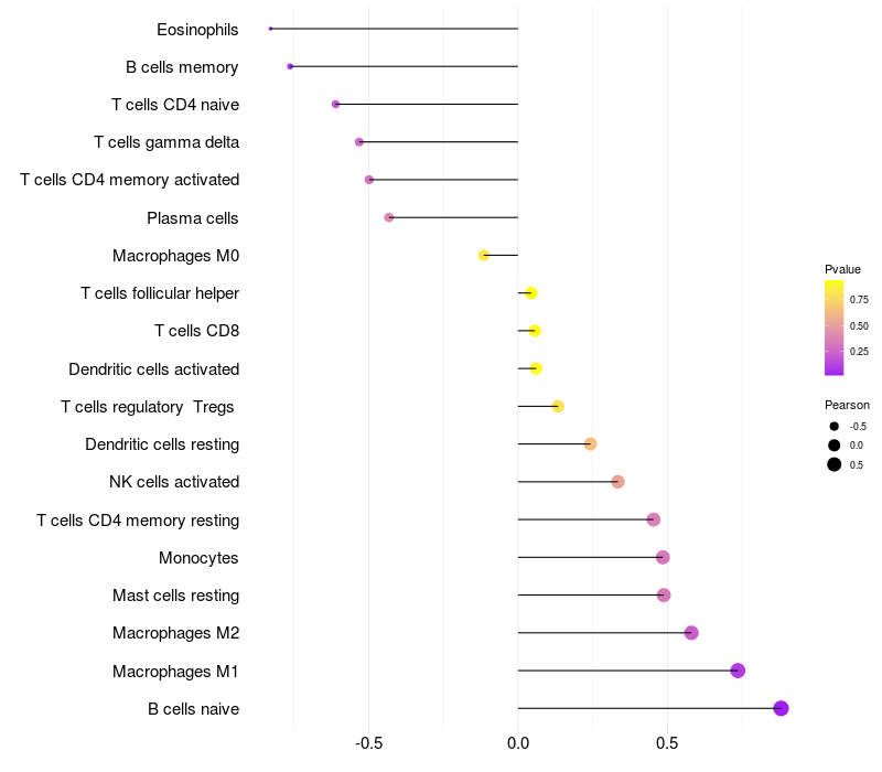 Lollipop of COX15 expression and immune infiltrating cell level correlation result in EBV+ samples