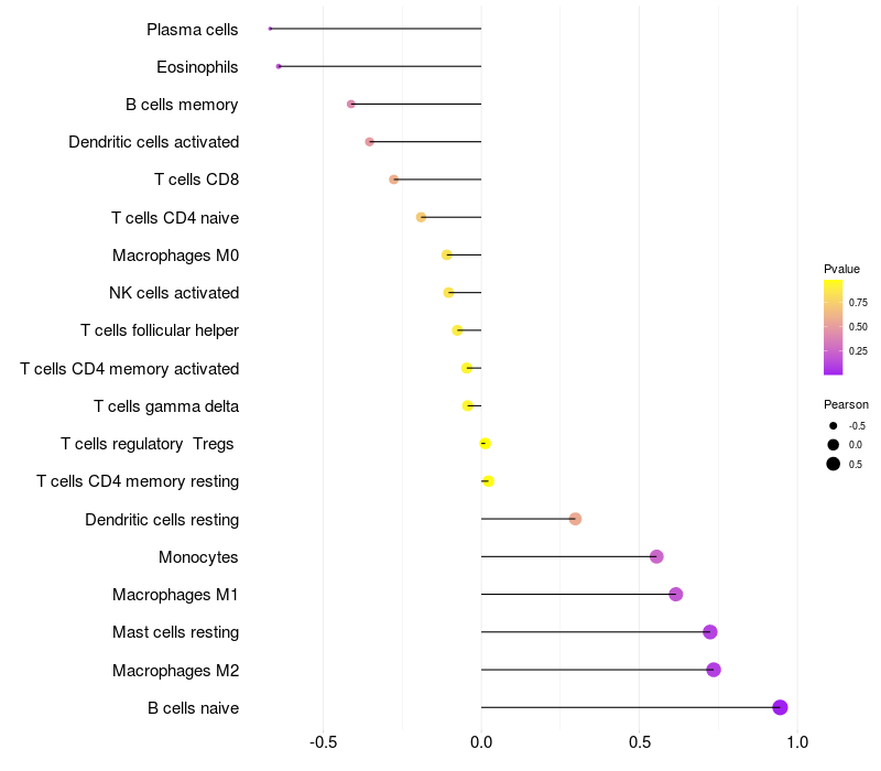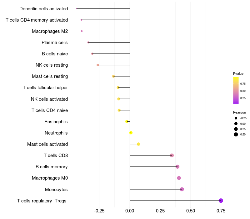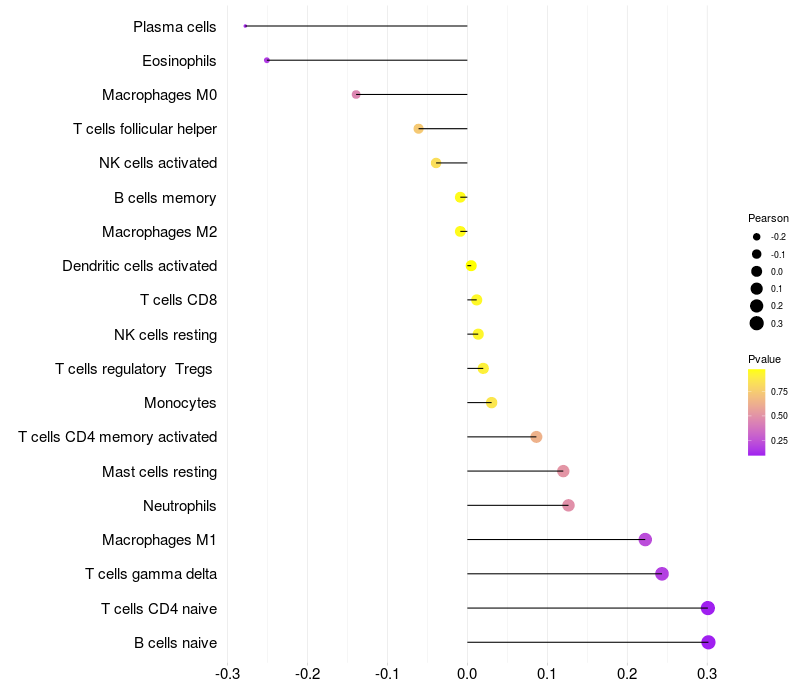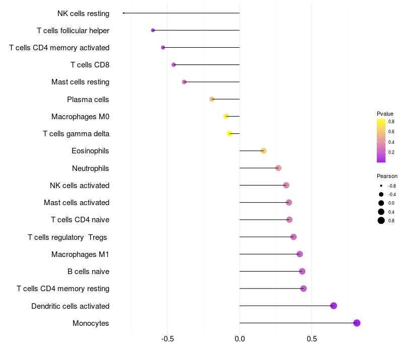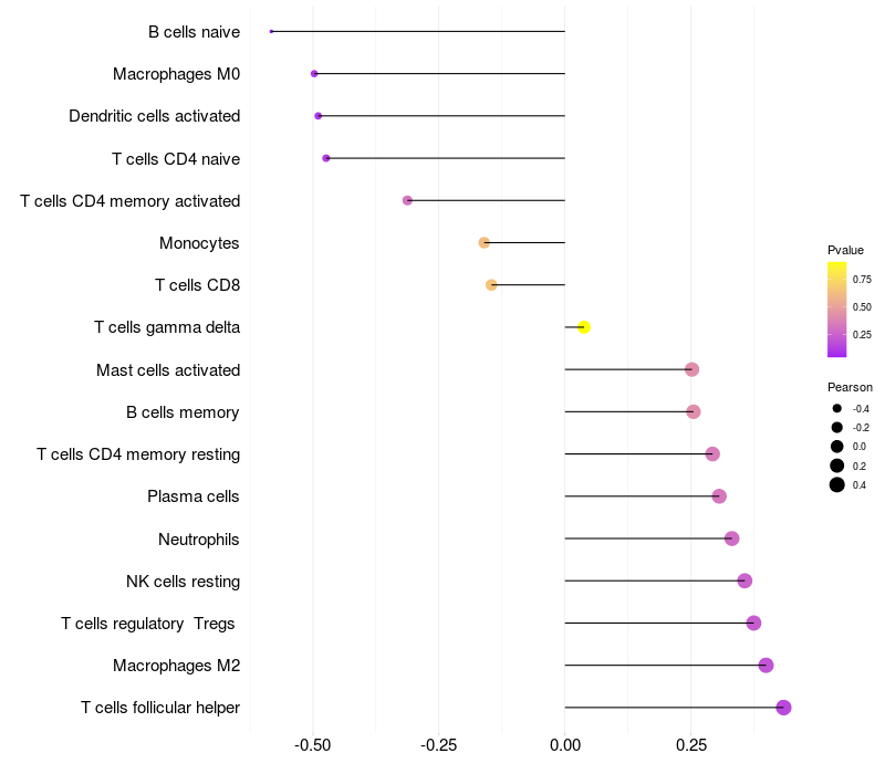Lollipop of CPNE8 expression and immune infiltrating cell level correlation result in EBV+ samples