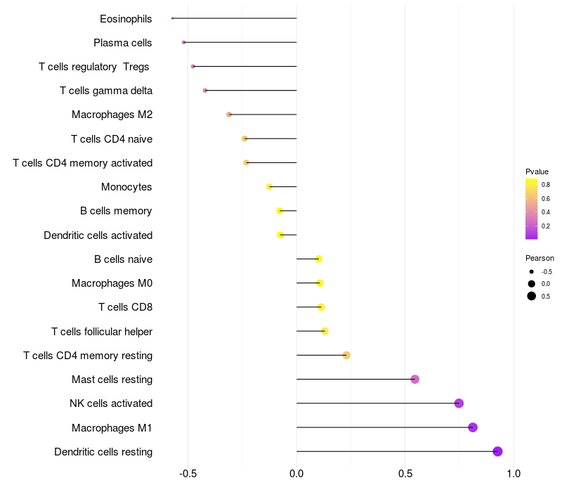 Lollipop of CPPED1 expression and immune infiltrating cell level correlation result in EBV+ samples
