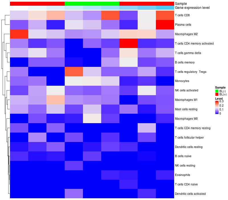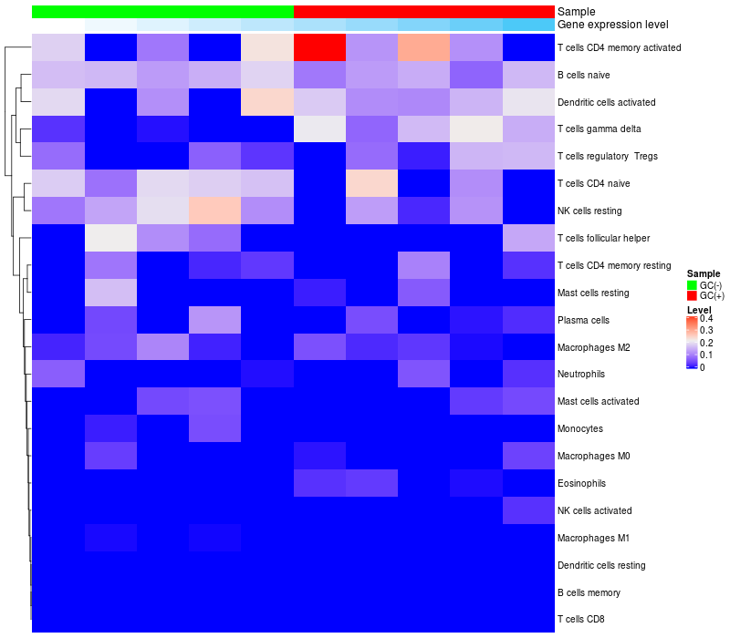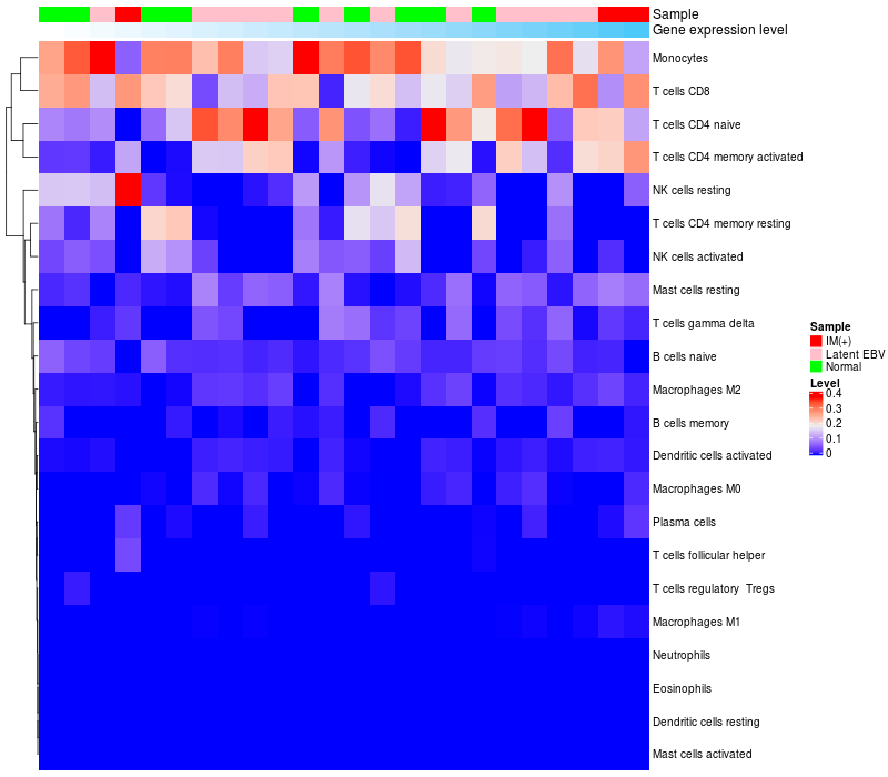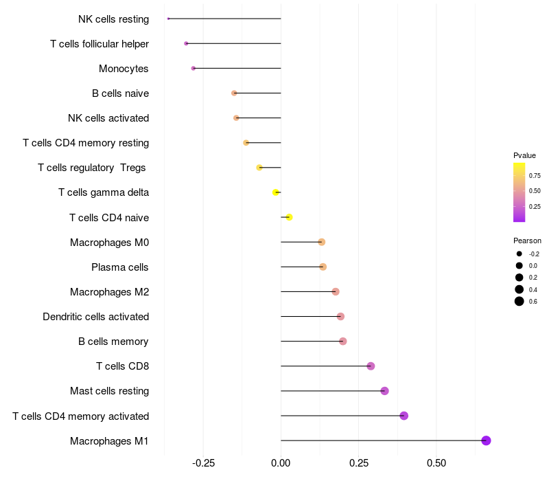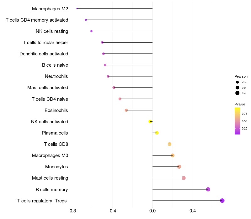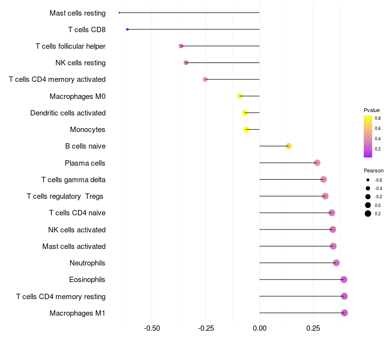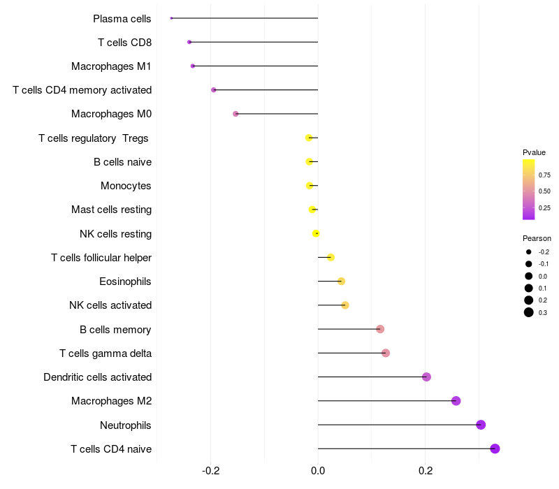 Lollipop of CPS1 expression and immune infiltrating cell level correlation result in EBV+ samples
