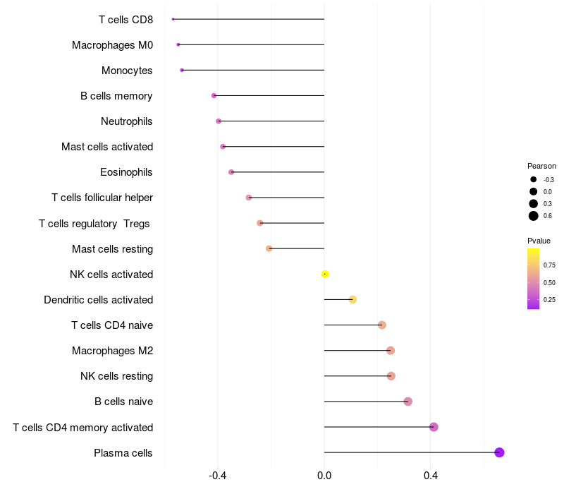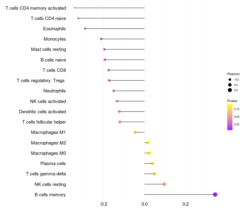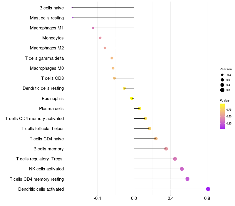 Lollipop of CRIM1 expression and immune infiltrating cell level correlation result in EBV+ samples