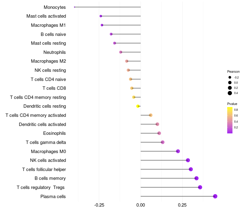 Relationship between gene expression and immune infiltrating cell level