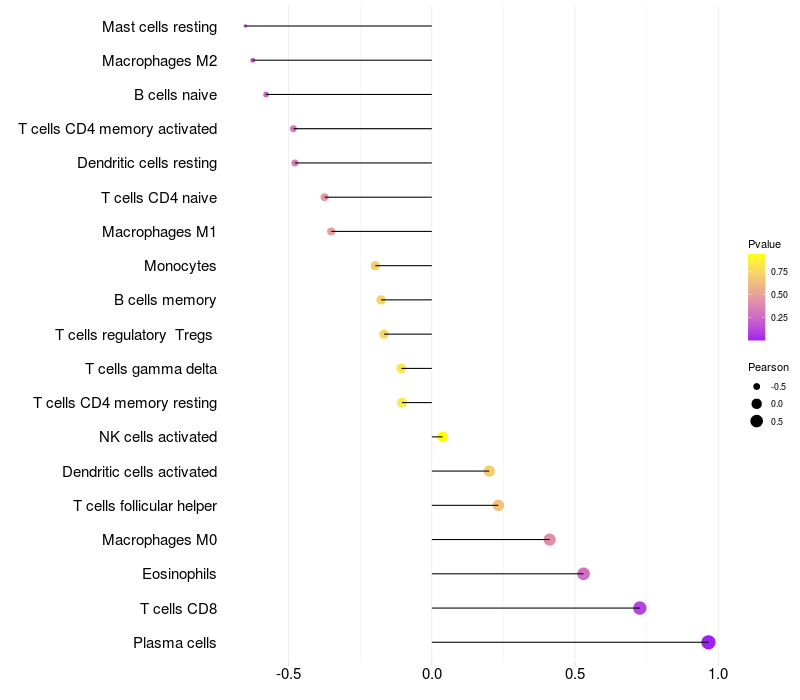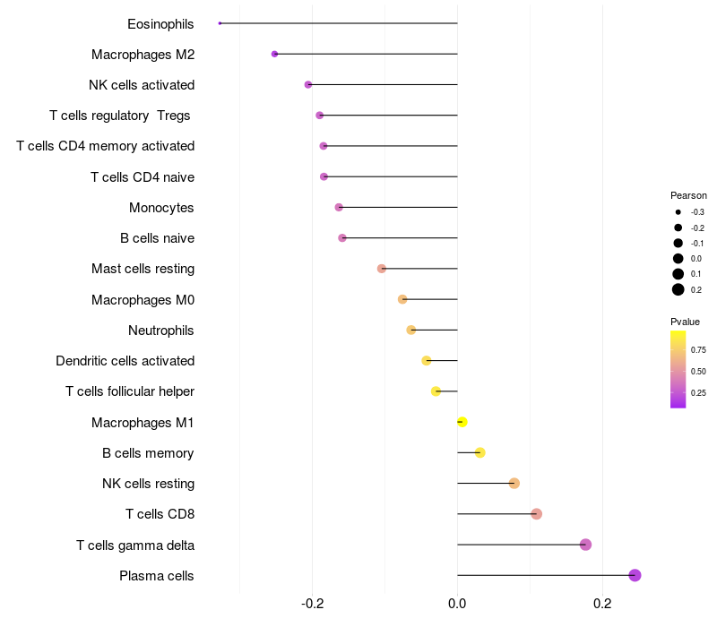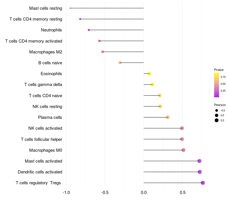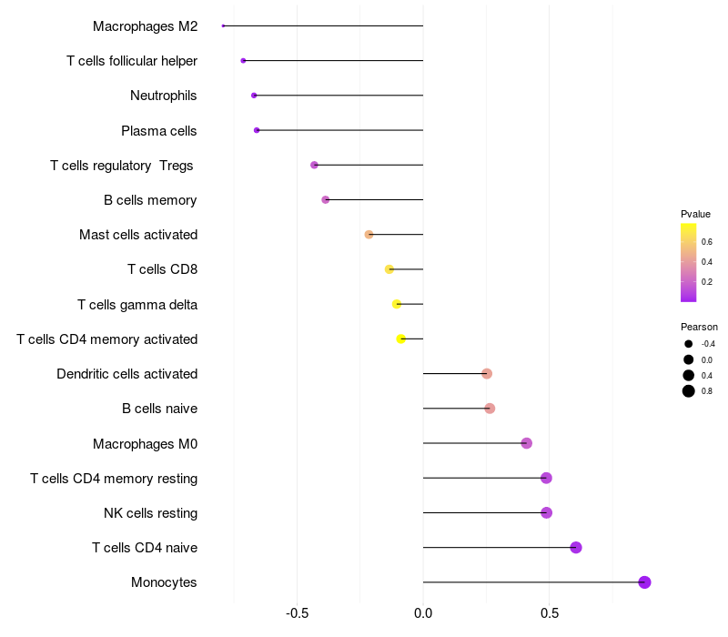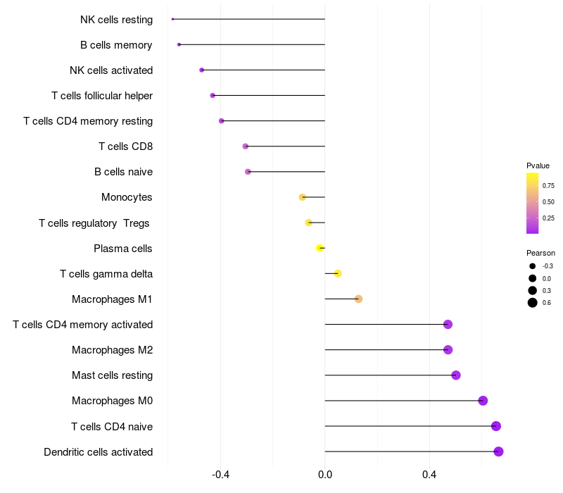 Lollipop of CRTC1 expression and immune infiltrating cell level correlation result in EBV+ samples
